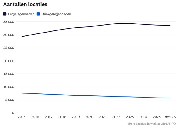Uit cijfers van het CBS blijkt dat het aantal restaurants of ander type eetgelegenheid dat is geregistreerd bij de Kamer van Koophandel stijgt en het aantal cafés iets daalt. Dat resulteert niet in een stijging in het aantal restaurants in het straatbeeld. Uit de vastgoeddata van Locatus blijkt namelijk dat het aantal eetgelegenheden sinds 2022 rond de 34.000 schommelt en recent zelfs iets daalt. De stagnatie wordt veroorzaakt door de lastige financiële situatie in de afgelopen paar jaar en de personeelstekorten. Hierdoor is het voor nieuwe ondernemingen lastiger om te starten, duurt de start langer of komt het plan helemaal niet van de grond.