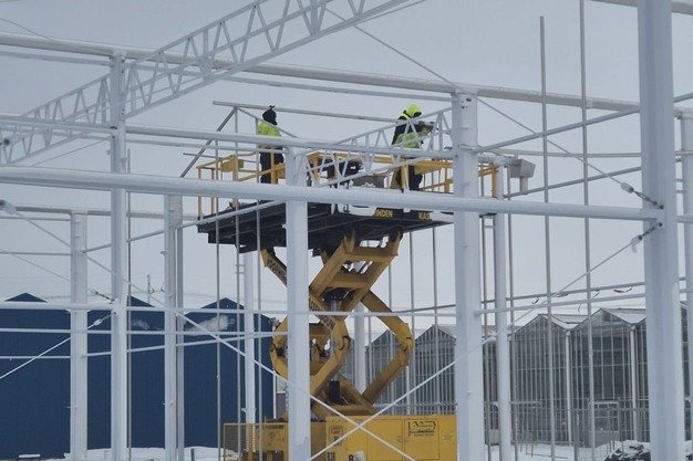 © Bom GroupDe kassenbouw, hier door Bom Group bij de WUR in Bleiswijk, ging 'gewoon' door.