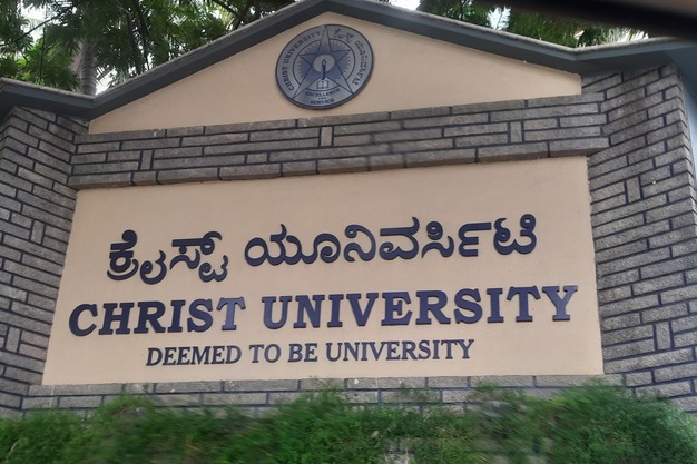 Dharmendra Rai (links midden) schudt de hand van Rev. Dr. Fr. Joseph C. C. (rechts midden), de vicekanselier van Christ University