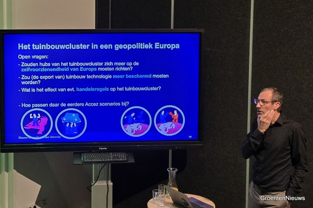 Tholen - In de glastuinbouwsector vertelt men graag over de koploperspositie die 'we' hebben als Nederland. Als je kijkt naar hightech techniek in de sector en productiviteit, dan is hoogleraar Peter Bodegom het daarmee eens. Cijfermatig wil hij het populaire narratief wel nuanceren. In 'bulk' is Nederland geen koploper. Dat kunnen andere grote tuinbouwlanden ook. Hoe blijft de Nederlandse glastuinbouwsector levensvatbaar? Met de beperkte ruimte die er in Nederland is, staat de tuinbouw onder druk.