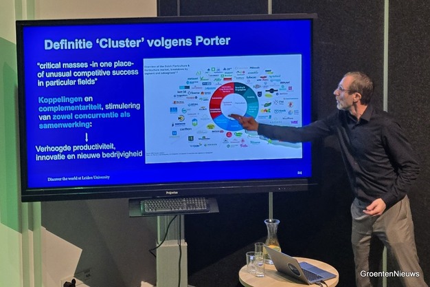 Een van de tuinbouwclusters in de tuinbouw is Westland, of breder Nederland. Maar, zo stelt Bodegom, elders bestaan ook clusters. Hij denkt daarom met het oog op de toekomst aan een netwerk van clusters. Voorbeelden van Nederlandse bedrijven die zich elders in clusters hebben gevestigd, komen voorbij. Denk aan Royal Brinkman of Koppert, in Spanje. Westland zocht vorig jaar nadrukkelijk al de verbinding met Almería, in Spanje. Het college van Bodegom sloot daarbij duidelijk aan.