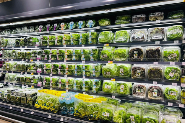 Bladgroenten, handmatig verpakt voor de lokale supermarktketen Panda