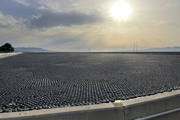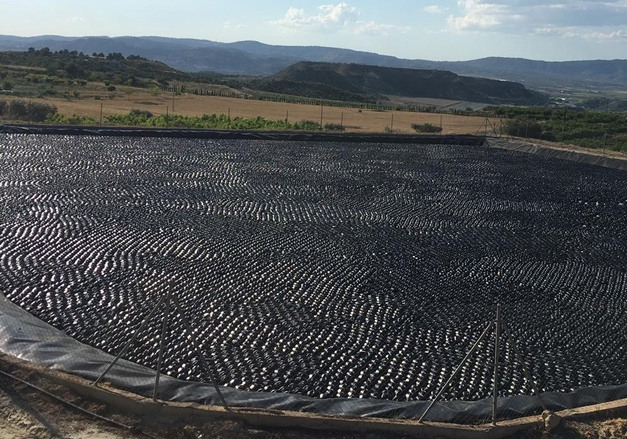 Evapo-Control ontwikkelde een systeem van drijvende modules dat tot 80% van de verdamping tegengaat en de groei van algen volledig stopt. De modules zijn zeshoekige elementen van hoogwaardig polyethyleen, hetzelfde materiaal dat ook gebruikt wordt voor waterdichte afdekkingen. Ze worden rechtstreeks op het wateroppervlak verspreid.