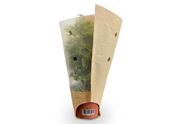 Top View: voorzien van een bovenste deel van folie of pergamijn voor maximale zichtbaarheid van de plant, met behoud van een schone en stabiele verpakking.