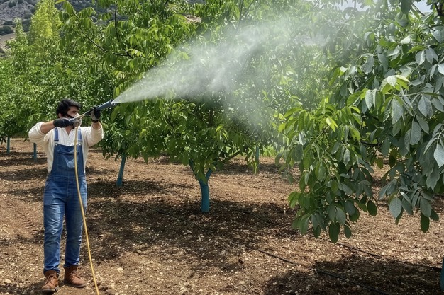 "In tegenstelling tot kascoatings creëert Cropshader een dun laagje witte stippen op bladeren en vruchten, waardoor de temperatuur wordt verlaagd en de fotosynthetische activiteit wordt bevorderd," zegt Özkan. Cropshader is erkend als EU-biostimulant voor planten zoals citrus, noten, appels, peren en olijven en bevat naast calciumcarbonaat ook een UVB-reflecterend pigment. "Het gebruik van zetmeelbindmiddelen betekent dat er geen microplastics zijn, in tegenstelling tot de acrylbindmiddelen die momenteel beschikbaar zijn. Het product is eveneens eenvoudig te gebruiken, aangezien de vloeibare samenstelling de spuitmonden van apparatuur niet blokkeert. Uit proeven blijkt dat er minder zonnebrand optreedt dan bij kaolienalternatieven, en het biedt tevens bescherming tegen bladverbranding," verduidelijkt hij.