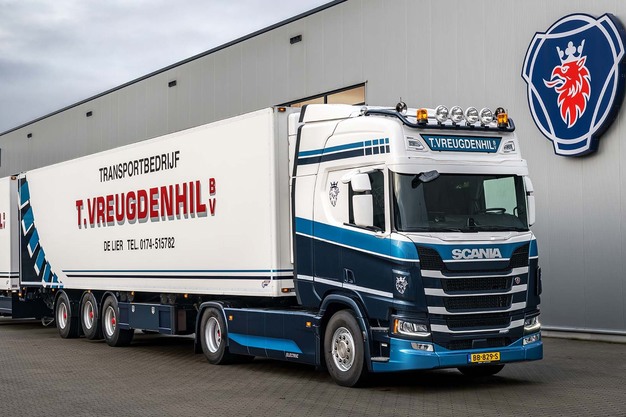 Transportbedrijf T. Vreugdenhil uit De Lier heeft een nieuwe, volledig elektrische Scania 40R trekker in gebruik genomen. Het voertuig is uitgerust met een luchtgeveerde vooras en het grootste beschikbare batterijpakket met een geïnstalleerde capaciteit van 624 kWh. Binnenkort volgt de aflevering van een tweede elektrische Scania met dezelfde configuratie. Met deze investering zet het familiebedrijf een belangrijke stap in de verdere verduurzaming van zijn transportactiviteiten.