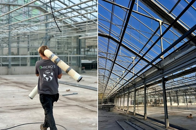 Werkzaamheden aan de nieuwe kas die binnenkort wordt betrokken