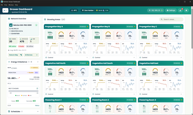 Hoewel Netvion ontworpen is om te integreren met bestaande klimaatbeheersingsplatformen, koos deze teler voor een andere aanpak. In plaats van een standaard klimaatcomputer van derden te gebruiken, ontwikkelde het bedrijf eigen software om de besturingslogica en systeemverbindingen te beheren.
