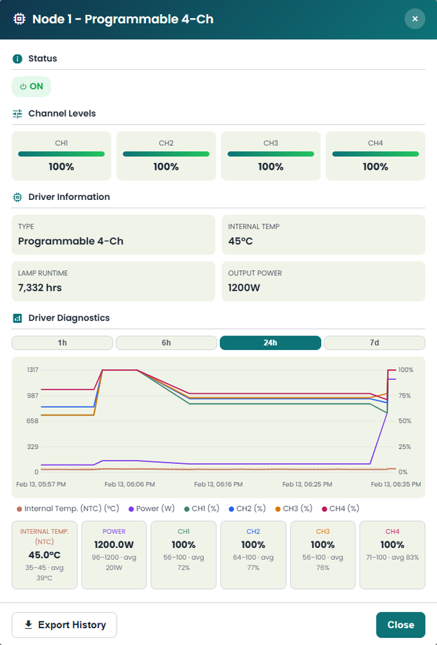 Hoogwaardige kasgewassen vereisen een nauwkeurige lichtregeling in verschillende groeifasen. Dankzij de meerkanaals belichtingsregeling van Netvion kon de teler de lichtniveaus nauwkeurig afstellen, variërend van slechts 30 µmol/m²/s tijdens piekprijsperioden tot maximaal 200 µmol/m²/s wanneer de energiekosten laag waren.
