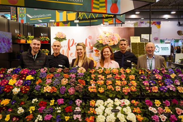 Het team van Rudy Raes voor de kleurrijke primula's. Zou de fotograaf ook nog Belgische chocolade hebben geproefd?