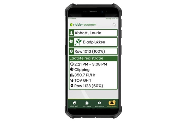 Niels legt uit dat hiervoor met scanners wordt gewerkt, die NFC-tags en QR-codes kunnen scannen. "In een eerdere versie van het systeem dat Ridder aanbiedt en dat bij veel telers in gebruik is, wordt gewerkt met terminals op vaste plekken in de kas. Daar kun je arbeidshandelingen registreren door de corresponderende codes in te voeren. Daarbij worden nog weleens fouten gemaakt. Met het scannen van een NFC-tag bij een pad, oogstkar of in de aardbeienteelt, bij een bakje of doosje, wordt die foutgevoeligheid veel kleiner. Dat hoor ik ook van gebruikers terug, bijvoorbeeld als ze omschakelen van registratie bij terminals in de kas naar registratie met scanners en NFC-tags."