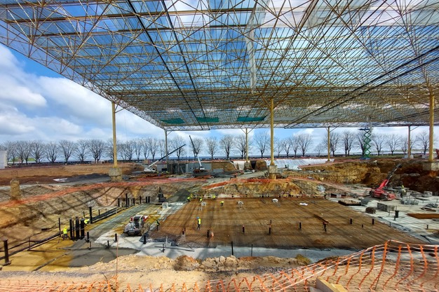 Voor de montage van Edenya werden er verschillende technieken uit de bouw van voetbalstadions en serreconstructie gecombineerd. "Om snelheid te halen, kozen we ervoor om met lichte bouwelementen en grote prefab-modules te werken. Die modules overspannen nu zo'n 2.500m² dakoppervlakte. Ze werden eerst op de grond opgebouwd om ze vervolgens stuk per stuk in 10 minuten tijd tot op 20 meter hoogte te hijsen", legt projectmanager Stijn Cappon uit. Die techniek biedt heel wat voordelen. "Zo konden we de dakstructuur en onderliggende zones parallel opbouwen, onafhankelijk van de weeromstandigheden, waardoor de werken vlot vooruitgingen."