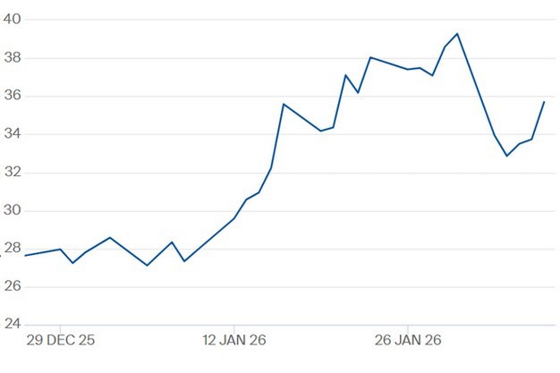TTF-gasprijs voor het contract maart 2026 t/m 6 februari 2026. Klik hier voor de actuele gascontractprijzen.