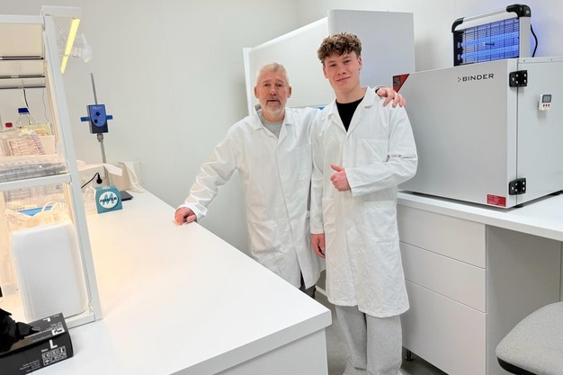 Marco met zijn zoon Jelle in het lab in Bergschenhoek