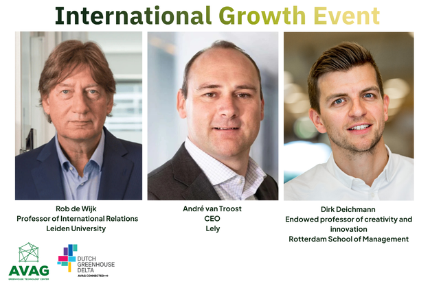 Tijdens het International Growth Event op 5 maart 2026 brengen Dutch Greenhouse Delta en AVAG drie sprekers samen die elk vanuit hun eigen expertise licht werpen op die vragen. Van geopolitieke duiding, via ondernemerschap, tot nieuwe businessmodellen: het event laat zien hoe internationale context zich vertaalt naar strategische keuzes voor de sector.