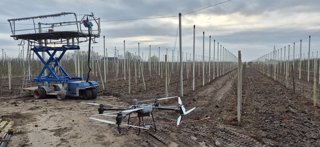 FruitSecurity Holland introduceert drone voor kabelwerk in boomgaarden