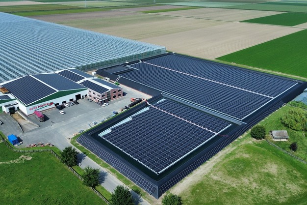 Aquasol Solar is bekend van zonneparken op waterbassins en andere dubbel te benutten ruimtes. Op de foto is het talud en dak bij Tomatenkwekerij In de Polder (lid van Oxin Growers) te zien. "Maar in de huidige markt is alleen opwekken niet meer optimaal rendabel", waarschuwen de energiespecialisten uit Maasdijk. "Met ons Energie Opslag Systeem (EOS) slaat u slim op en blijft u flexibel met energie. Zo maken wij voor u de simpele optelsom: Opwekken + Opslaan = flexibel Opmaken."