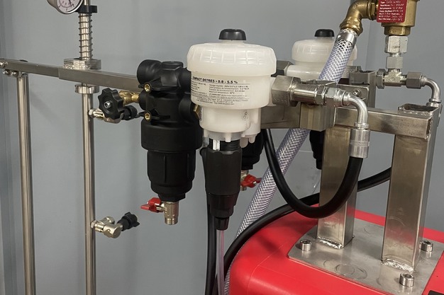 Al vele jaren is Holland Green Machine standhouder op de beurs HortiContact in Gorinchem. Dit jaar brengen zijn een drietal vernieuwde spuitrobots mee naar de beurs. Zo heeft het bedrijf voor een tomatenteler een robot met een dubbele Dosatron "Hiermee kan een teler gelijktijdig twee verschillende vloeistoffen spuiten", legt Eric Gerritsma uit "De spuitboom is verdeelt in twee secties (hoog/laag) en de robot is voorzien van twee spuitvloeistofconcentraattankjes."