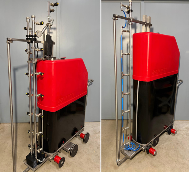 Voor een optimaal spuitresultaat is de AIR MIX robot op de markt gebracht. "Deze spuitrobot gebruikt niet alleen de kracht van een hogedrukspuitpomp, maar ook de kracht van de luchtcompressor. Met deze techniek komt de vloeistof dieper in het gewas. Meer energie geeft een beter spuitresultaat."