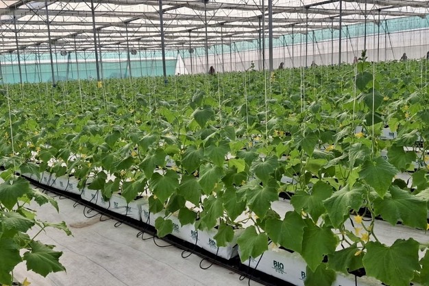 Rajat Agarwal en Pawan Agarwal, eigenaren van Rajasthan Greens in Kota, telen komkommers op twee hectare natuurlijk geventileerde foliekassen met insectengaas. De dagelijkse bedrijfsvoering staat onder leiding van agronomen Uttam Powar en Rahul Raj. Er wordt geteeld op kokossubstraat met nauwkeurige druppelfertigatie.
