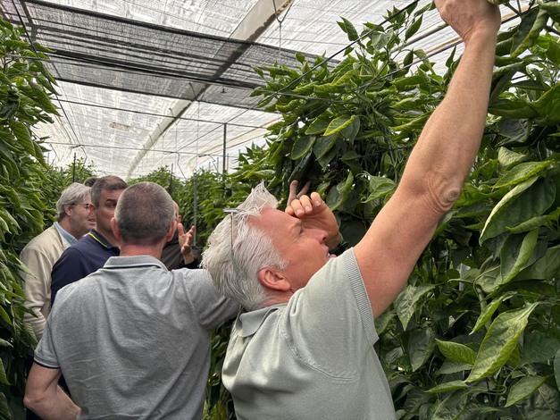 Wat deze reis vooral sterk maakte, was het samen verkennen van de praktijk. Tijdens bezoeken aan uiteenlopende teeltbedrijven werd direct zichtbaar hoe divers de omstandigheden in Almería zijn. Hoewel veel gewassen er goed bij stonden, werd ook duidelijk welke uitdagingen de lokale telers ervaren: oplopende kosten, zomerse watertekorten en een toenemende druk van trips en andere plagen. Deze inkijk in de dagelijkse praktijk leidde tot open gesprekken over verschillen tussen Spanje en Nederland, maar ook over waardevolle parallellen.
