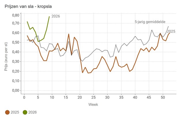Kropsla werd gemiddeld voor 77 eurocent per stuk verhandeld. Een opvallend hoge prijs in vergelijking met voorgaande jaren.