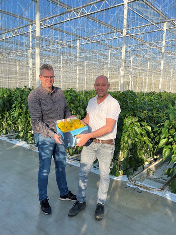 © Harvest HouseTholen - "Bij Harvest House kijken we uit naar het nieuwe paprikaseizoen. We starten met veel energie en hebben vertrouwen in een goed jaar. Dit seizoen versterken we onze coöperatie met Kwekerij De Westhoek, een samenwerking waar we trots op zijn. In de kas zagen we deze week al de eerste gele paprika's, klaar voor de oogst. Volgende week komt het echt op gang en leveren we onze gekleurde paprika's weer breed uit aan de handel", vertelt Marco Bergman, commercieel manager Paprika bij Harvest House. Robert Spruijt van Kwekerij De Westhoek kijkt ernaar uit: "We hebben er zin in. Deze week konden we voorzichtig een eerste doos vullen."