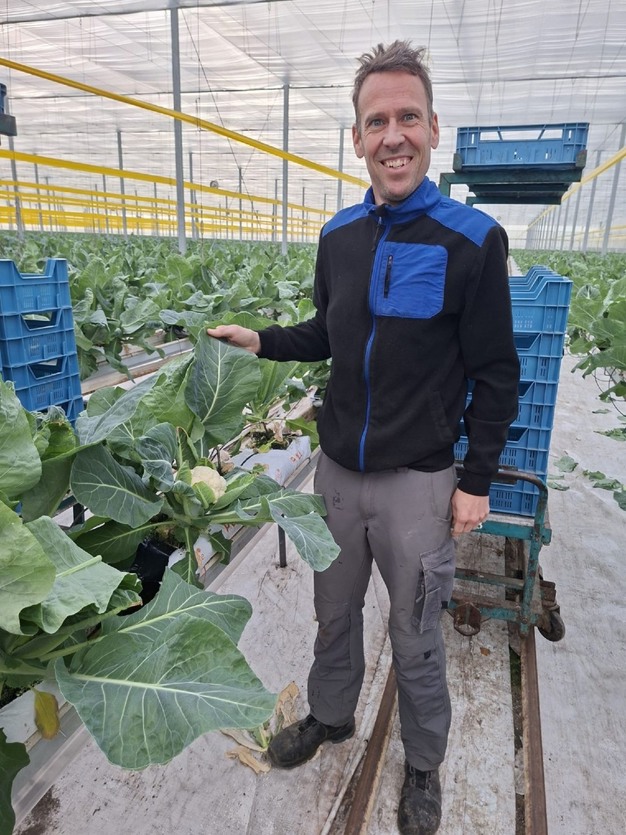 Vorig jaar teelde Ralph voor het eerst bloemkool in zijn kas. Hij besloot met het oog op arbeid en energie zijn teeltplan aan te passen van volledig gericht op de tomatenteelt naar meer diversificatie. "Vorig jaar ben ik bij ZON gestart met het veilen van gele courgettes. Van daaruit ben ik ook in gesprek gekomen over de kasbloemkolen."