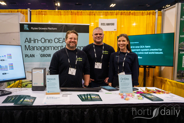 Jason Smith, Shaun Roberts en Lydia Ekeroth met Ryzee / AmHydro en het Rhyzee Growers Platform tijdens Indoor Ag-Con