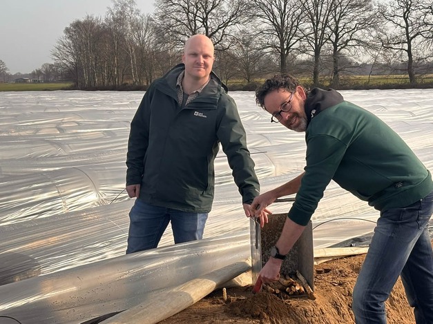 Tholen – Het Nederlandse aspergeseizoen is dit jaar eerder dan verwacht van start gegaan. Dankzij de gunstige winter en de zachte voorjaarstemperaturen van de afgelopen weken komen de asperges uit de vollegrond opvallend vroeg op gang. "Afgelopen weekend kwam door het natte weer de groei even tot stilstand, waardoor je maandag op alle veilingen lagere volumes zag," vertelt Marcel Goumans, productmanager bij ZON. "Maar de warmte zit nog in de bedden en de asperges zijn wakker. Met een paar goede dagen komt die aanvoer weer snel op gang."