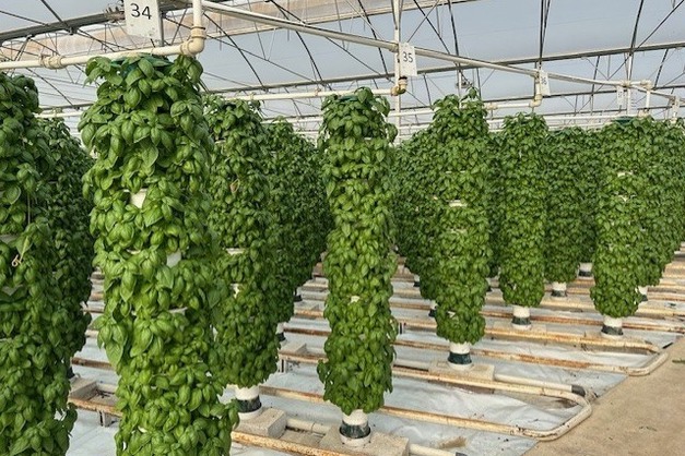 "Onze vertical farm is gevestigd in Offenham, in Vale of Evesham. Het beslaat 1,2 hectare, waarvan één hectare gewijd is aan gewasteelt. De rest gebruiken we voor kantoren, koelopslag en zaailingenteelt," vertelt Joe Pilade, commercieel directeur bij Valefresco. "Hier telen we vooral aromatische kruiden, die vanwege hun hoge kosten en waarde ideaal zijn. In de zomer, wanneer de productie sneller verloopt, benutten we 75% van de capaciteit voor basilicum. Dit maakt het mogelijk om volumes vanuit zomerse omstandigheden in de winter te meten. Zo ontstaat er extra ruimte en gebruiken we in de zomer 75% van de kas voor basilicumteelt. Door onze eigen basilicum te telen, verminderen we de import uit Kenia, wat de ecologische voetafdruk aanzienlijk verlaagt en luchtkilometers bespaart. We experimenteren ook met munt, kropsla en paksoi. Bovendien hebben we vlak bij de kas een biomassa-installatie gebouwd, zodat we deze in de winter met oud hout kunnen verwarmen."