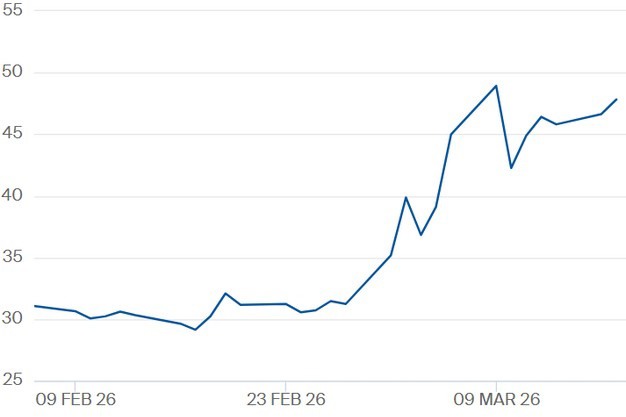 Er zit de laatste dagen nog maar beperkt beweging in de TTF-gasprijs, die stabiliseert rond de 50 euro per megawattuur voor het restant van 2026. De TTF-gasprijs voor Q1 2027 ligt aan het begin van de woensdag op 47 euro per megawattuur.
