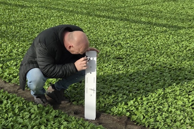 Heel vaak doen ze wat ze al jaren doen, vertelt Ron. "Dus vooraf spuiten, terwijl je nog helemaal niet weet of de plaag aanwezig is. Een teler kijkt of er schade te zien is in het gewas en besluit op basis daarvan te spuiten. Preventief spuiten dus, maar dan lopen telers vast, want het aantal toepassingen van veel middelen is minder geworden en veel middelen zijn er al helemaal uit. Dus het monitoren van koolvlieg wordt steeds belangrijker. Scouten van bijvoorbeeld koolvlieg past precies in het plaatje van weerbaar telen, waar we in de radijs volop mee bezig zijn."