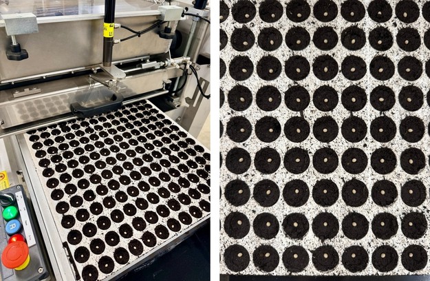 In tegenstelling tot traditionele deep water culture-systemen, waarbij het hele teeltseizoen in bassins wordt doorlopen, scheidt dit concept de hoge-dichtheidsfase en de afwerkingsfase. De eerste fase vindt plaats in een vooraf gevormde tray van 280 pluggen, los gevuld met substraat. Zaaien gebeurt met een Flier-zaailijn, waarbij water, voeding en zaden in één keer worden toegepast. Het kiemproces duurt twee tot drie dagen.