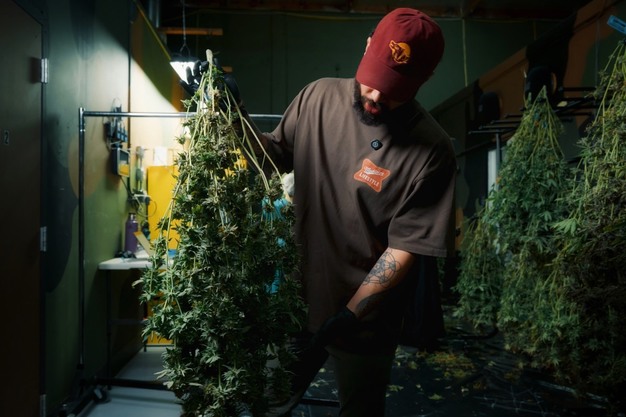 Met dode bladeren die in de toppen achterbleven, verschoof de focus naar de verwerking. Prioriteit was het verwijderen van dode bladeren vóór het knippen en sorteren van de toppen om geur en terpenen te behouden.