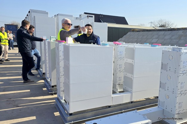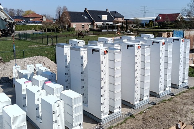 Tholen - Naast de kassen van tomatenteler Roots in Honselersdijk is deze week een batterijsysteem geplaatst. Tijdens een kijkmiddag op donderdag konden nieuwsgierigen zien hoe het project in aanbouw is. Op dat moment is de bouw halverwege. In totaal duurt het opbouwen van het systeem van 5 MWh 4 dagen.