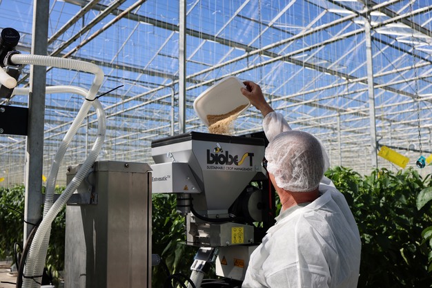 Het succes van biologische bestrijdingsprogramma's hangt niet alleen af van de kwaliteit van de nuttige organismen, maar ook van hoe nauwkeurig en gelijkmatig ze in het gewas worden geïntroduceerd, vertelt hij. "Traditionele, manuele toepassingen leiden vaak tot een ongelijkmatige verdeling en inconsistente afgifte van nuttigen, evenals een hoge arbeidsbehoefte, wat de vestiging en populatieopbouw belemmert en de effectiviteit van de bestrijding verlaagt."