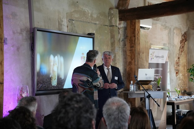 Na een presentatie over de gastlocatie Kasteel Aldenghoor door Rogier Helwegen, een gesprek met gedeputeerde Faassen en een presentatie van Vollegronds Groente Organisatie (VGO) door John Willems was de bühne voor Rowwen Heze-bandlid Tren van Enckevort. Als blijk van waardering en zijn inzet voor de Limburgse muziek, werd van Enckevort verrast met het Gouden Aspergemes, een prestigieuze onderscheiding die jaarlijks wordt toegekend aan iemand die zich op bijzondere wijze heeft ingezet voor de Limburgse cultuur. Van Enckevort werd verrast met de prijs, waarna hij in zijn dankwoord zijn waardering uitsprak voor de sector en zijn persoonlijke band met de Limburgse aspergeteelt benadrukte.