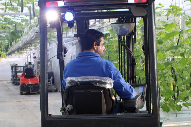 Samen met directeur Anton Weststrate van de specialist in interne logistiek zette de komkommerteler zijn wensen en eisen op een rijtje voordat hij tot aanschaf van een heftruck overging. De keuze viel op een compacte heftruck met een korte draaicirkel en een maximaal laadgewicht van 1800 kilogram.