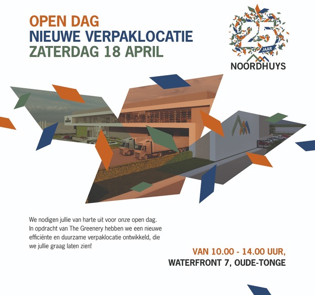 Op zaterdag 18 april organiseert Noordhuys een open dag op de nieuwe verpaklocatie, die in opdracht van The Greenery is gebouwd. Daarnaast viert het bedrijf zijn 25‑jarig jubileum.