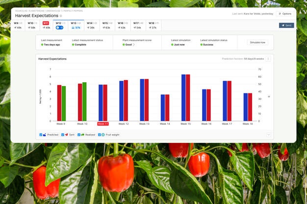 Harvest Forecast for Pepper start met ondersteuning voor zes rassen: Alzamora, Gina, Cadalora, Yedda, Frazier en Silverstone — samen een significant deel van het blokvormige paprika klantenbestand. Aanvullende rassen volgen de komende weken.