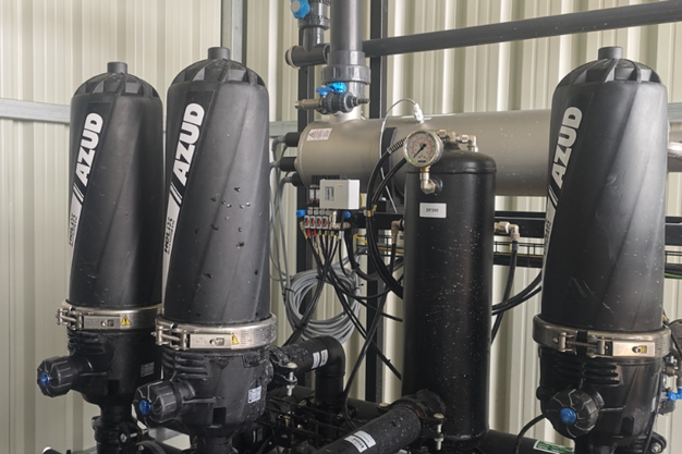 "In de eerste stap vindt mechanische filtratie plaats met AZUD Helix Automatic-apparatuur met luchtondersteuning, op twee filtratieniveaus van 100 en 5 micron, waarmee het grootste deel van de organische en anorganische deeltjes wordt verwijderd."