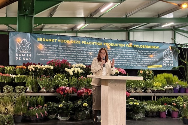 De dag, die in totaal 7500 bezoekers trok, begon met een officiële opening bij Tomatenkwekerij In de Polder in Luttelgeest. Wethouder Linda Verduin sprak mooie woorden, benoemde de vooruitstrevendheid van het glastuinbouwgebied Nieuwland en roemde de sterke samenwerking tussen ondernemers, gemeente en andere betrokken partijen. Ook legde zij nadruk op het grote belang van de glastuinbouw voor de Noordoostpolder: als motor voor werkgelegenheid, innovatie en economische groei, maar ook als sector die volop investeert in duurzaamheid en goede voorzieningen voor medewerkers, zoals passende huisvesting. Met haar woorden onderstreepte zij de trots die de regio mag voelen voor deze moderne en toekomstgerichte sector. Aansluitend verklaarde zij Kom in de Kas officieel voor geopend en wenste zij alle bezoekers een inspirerende en leerzame dag toe.