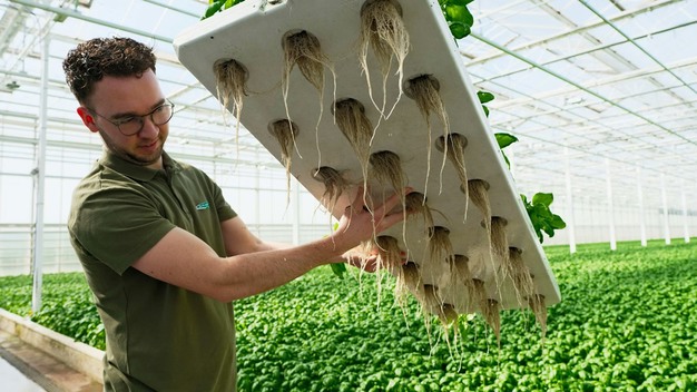 Met acht hectare kas en zo'n dertig hectare buitenteelt is De Kruidenaer inmiddels uitgegroeid tot een van de grootste kruidentelers van Nederland. En dat is best bijzonder, want kruiden vormen een nichemarkt. "We telen zo'n twintig tot tweeëntwintig soorten," vertelt Marijn. "Van basilicum en munt tot koriander, citroentijm en dragon. Die diversiteit maakt het juist interessant." In de kas draait alles om controle en continuïteit. Basilicum wordt er jaarrond geteeld, terwijl andere kruiden deels afhankelijk zijn van het seizoen. Bij de buitenteelt speelt het weer een grote rol. "Een hagelbui kan zomaar je oogst verpesten," zegt Marijn nuchter. De diversiteit aan planten en groeiwijzen is uitdagend. Tegelijkertijd groeit de vraag. "Kruiden zijn geen luxeproduct meer," legt Niek uit. "Mensen koken bewuster, internationaler. Koriander bijvoorbeeld, dat was tien jaar geleden veel minder populair dan nu."