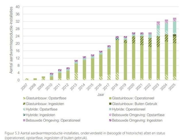 In 2025 zijn negen aardwarmteboringen beëindigd. Vijf van deze boringen zijn uitgevoerd voor het verkrijgen van gegevens voor zuiver wetenschappelijk onderzoek of voor het door de centrale overheid te voeren beleid en zullen geen deel uitmaken van een productie-installatie. Twee boringen zijn succesvol gezet ter vervanging van eerder uitgevallen putten. De overige twee boringen vormen de voortzetting van een boorcampagne die in 2024 technisch mislukte, maar in 2025 alsnog succesvol is afgerond. Dit heeft geleid tot de realisatie van een nieuwe aardwarmteproductie-installatie binnen de vergunning Poeldijk II, oftewel project Aardwarmte Vogelaer. Dit alles blijkt uit een voorpublicatie uit het 'Jaarverslag 2025 - Delfstoffen en Aardwarmte in Nederland.'