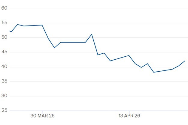 TTF-gasprijs voor het contract Q1 2027 tot en met 22 april 2026. Klik hier voor de actuele gascontractprijzen.