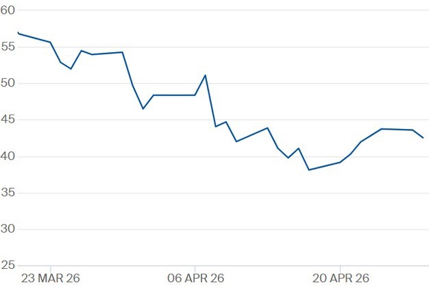 TTF-gasprijs voor het contract Q1 2027 tot en met 28 april 2026. Klik hier voor de actuele gascontractprijzen.