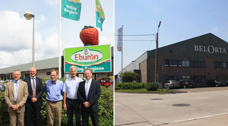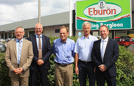 V.l.n.r.: Jos Craemers (Directeur Veiling Borgloon), Chris de Pooter (Directeur BelOrta), Pierre Vrancken, (Voorzitter Veiling Borgloon) Johan Creten (Ondervoorzitter Veiling Borgloon) en Filip Fontaine (Directeur BelOrta)