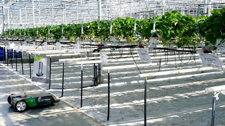 Een grijparm die vanonder de aardbei pakt, deze draait, het steeltje afbreekt en vervolgens in de punnet op de platte wagen plaatst. Dat is de basis van de oogstrobot waar de ingenieurs van het Belgische bureau Octinion aan werken. Op de Internationale Mechanisatie en Demonstratie dag in Hoogstraten werd een prototype van de machine voorgesteld. "De insteek is dat de machine 70% van de aardbeien plukt en om de 3 seconden een vrucht oogst", vertelt technisch directeur Jan Anthonis. "Daarmee zou het apparaat evenveel moeten kosten als een plukker." De machine moet 24 kg per uur gaan oogsten, tegen 12-20 kg voor een menselijke plukker. Bovendien kan de robot 24 uur per dag werken.