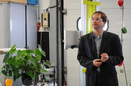 In april 2012 werden er met het eerste prototype proeven in de paprikakas gedaan. Dit prototype moet in het najaar zelfstandig in een kas kunnen plukken, terwijl een tweede, verbeterde prototype parallel in ontwikkeling is. En dat is lastig, vertelt onderzoeker Jochen Hemming van de WUR op de lustrumdag van de Nederlandse Vereniging Techniek in de Landbouw. “Je werkt met een kwetsbaar product in een ongestructureerde omgeving. De paprika’s zijn verstopt achter bladeren en stengels en er is sprake van clustering; meerdere producten bij elkaar”, somt hij op. “Dan moet je ook nog het snijpunt lokaliseren. En de plant blijft tot in het najaar groeien, dus je ruimte is erg beperkt. ”